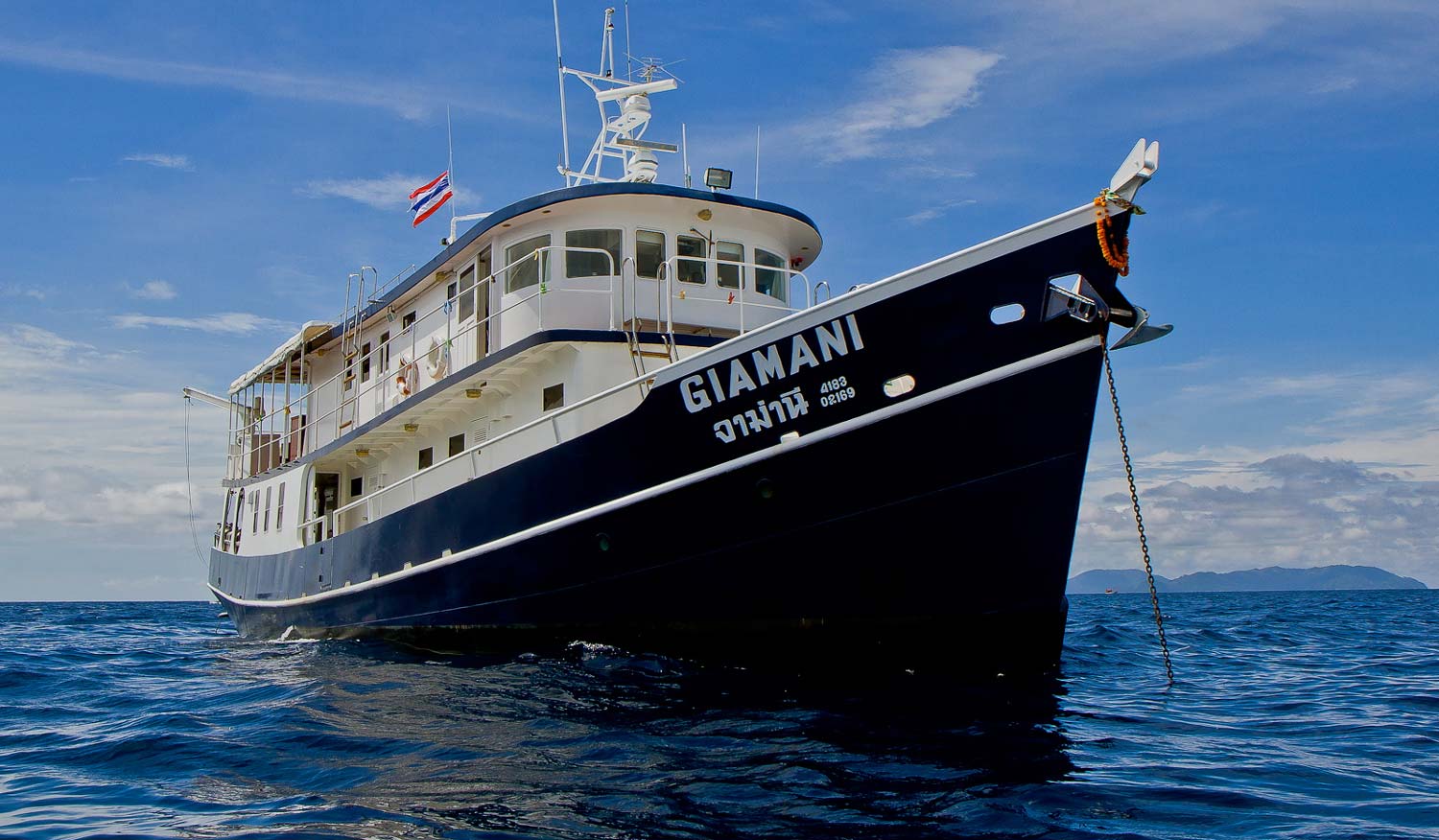 Giamani-1500-1500X875 by JBW | SeptemberJ2018The MV Giamani Thailand liveaboard takes 10 guests in five air-conditioned cabins at two price points. She dives Similan and Richelieu Rock and Hin Daeng in...